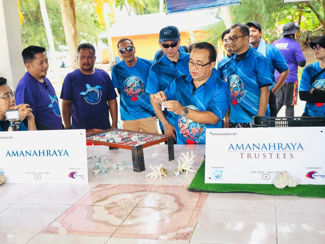AmanahRaya Trustees Berhad and AmanahRaya Berhad embark on a conservation journey at Pulau Redang, focusing on coral conservation and releasing 200 baby turtles. ART and AmanahRaya collaborate with Malaysia Tidal Garden Association (MTGA), a non-governmental organization (NGO) by sponsoring of two seeding tables containing 400 coral reef seeds.